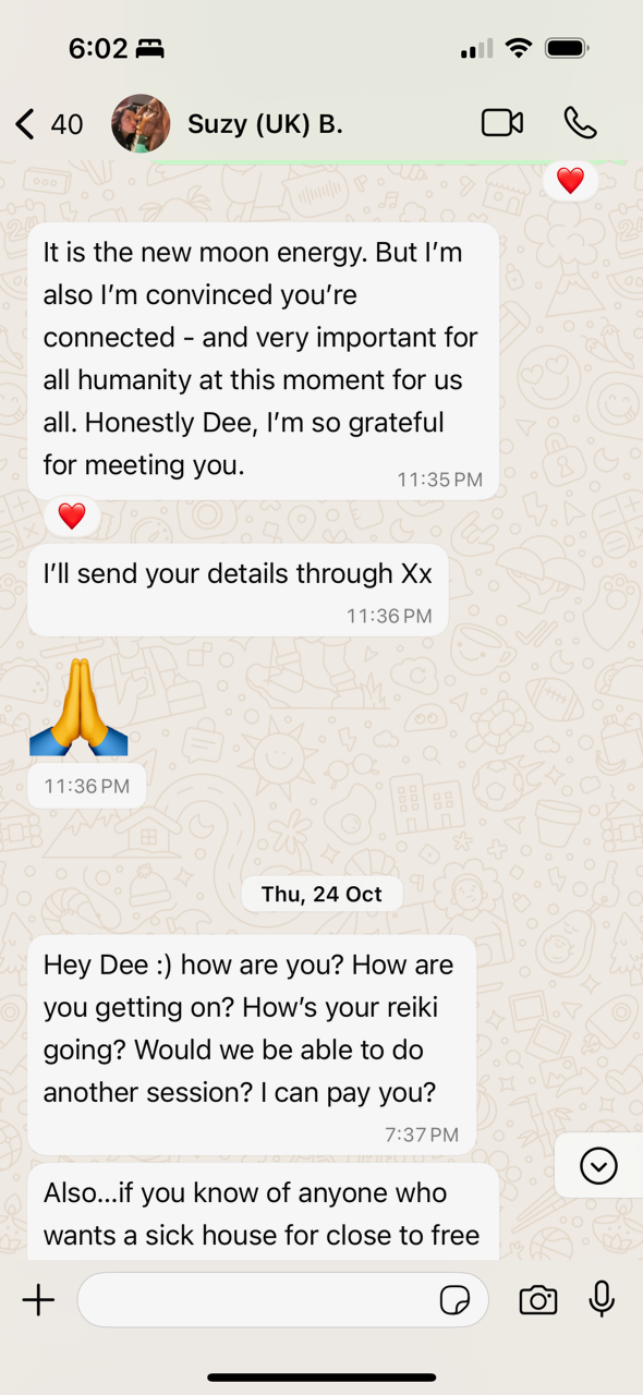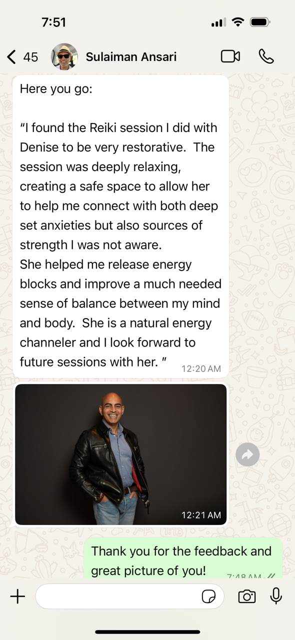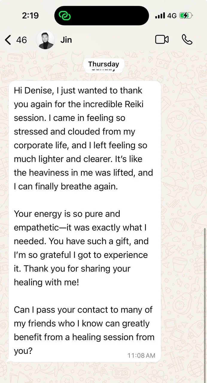 To prepare for a virtual Reiki session, find a quiet and comfortable space where you can relax without distractions at the agreed time. Remove any stone or metal jewelry and accessories. Simply come as you are—there’s no need to worry about clearing your mind completely; just focus on being present and open to the experience.